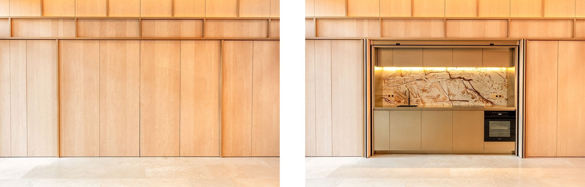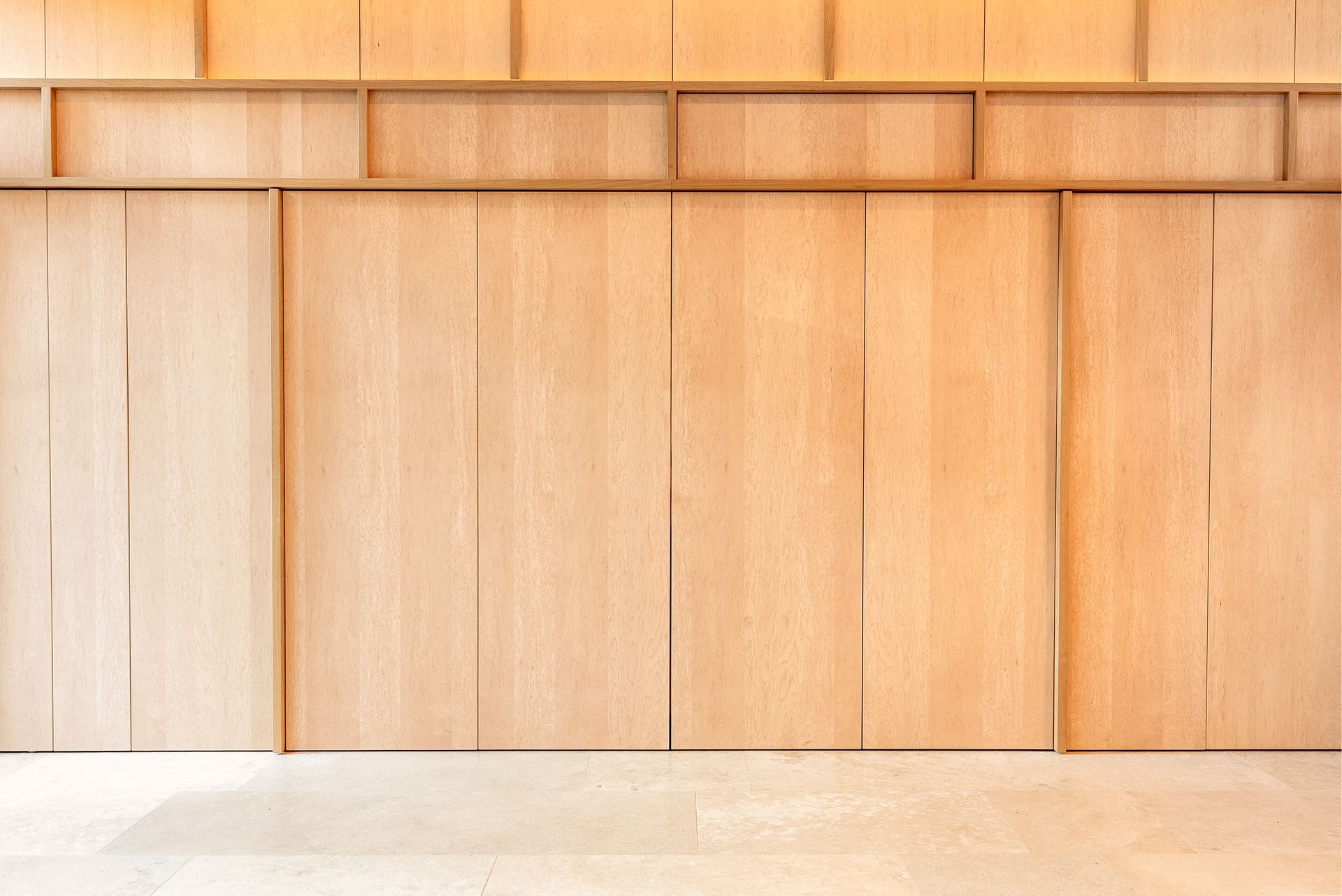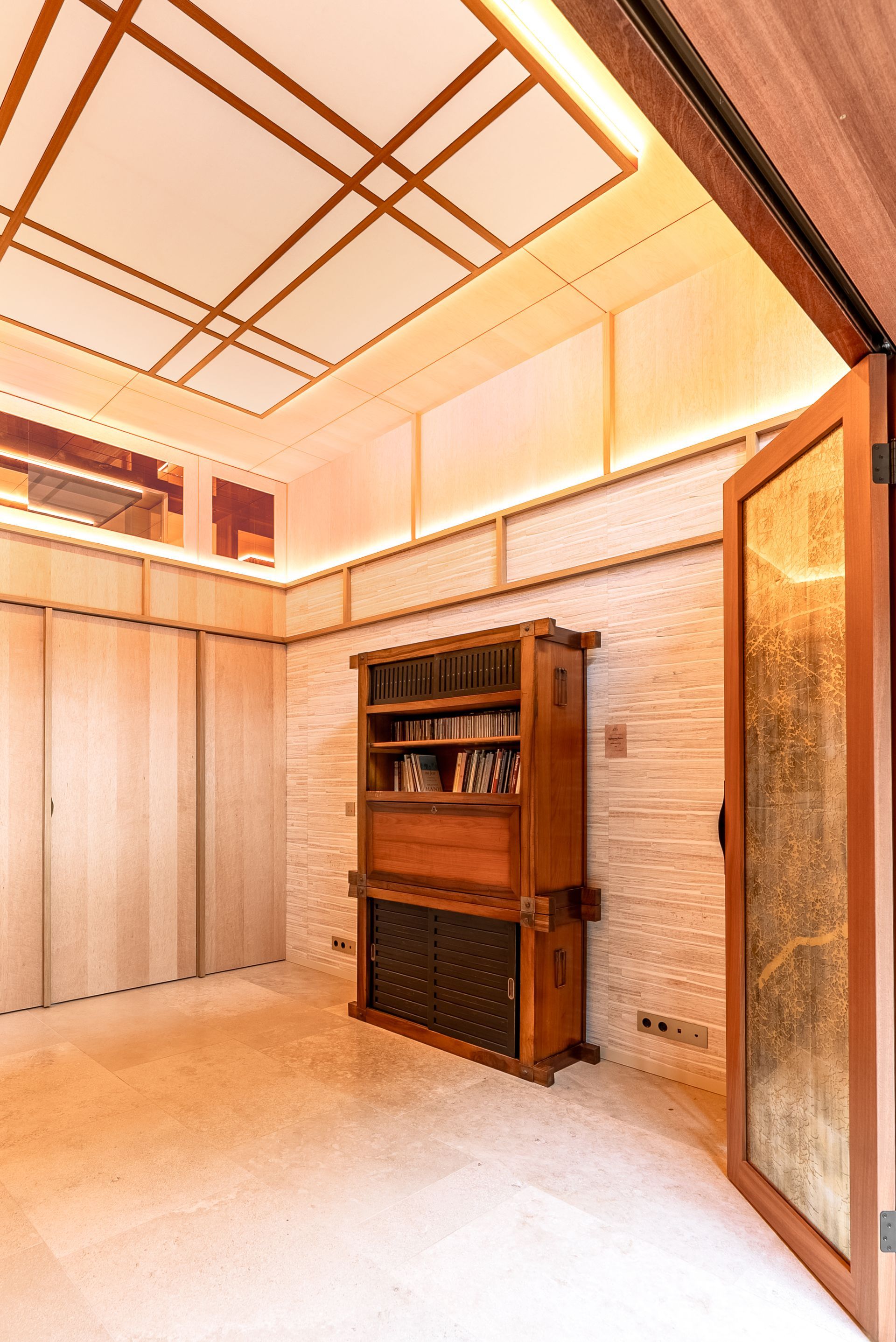 This study functions as an adaptable divider, capable of being fully closed for privacy or opened to unify the spaces, allowing the ground floor to transition effortlessly between personal, professional, and social uses.